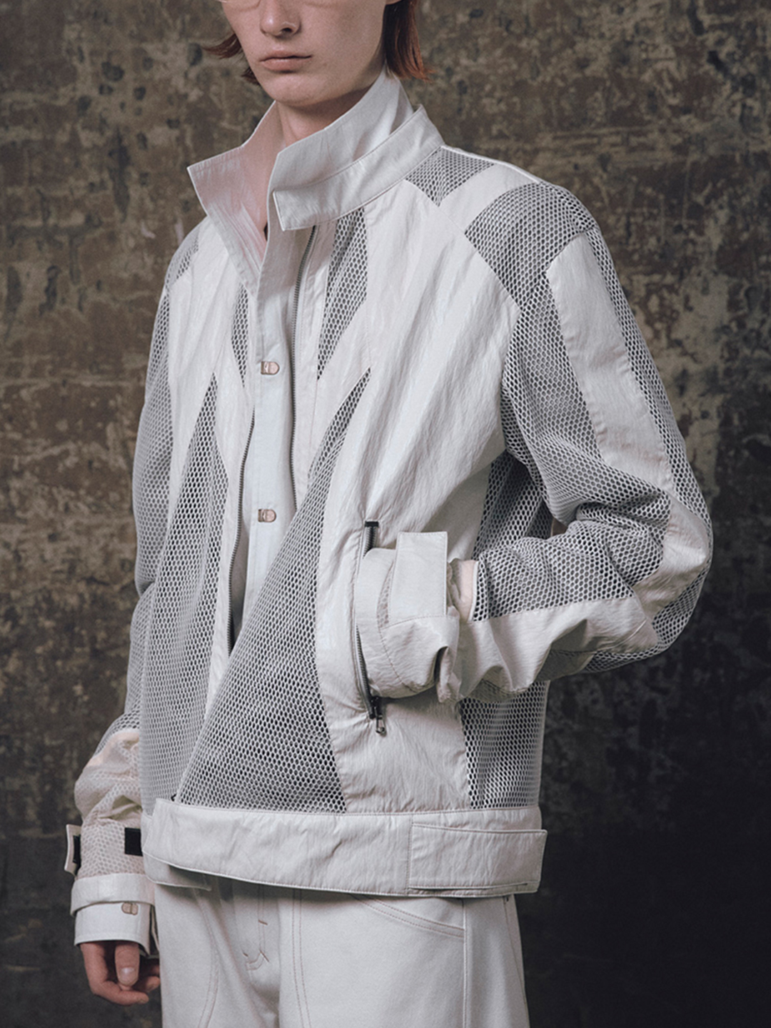 메쉬 원단과 반투명한 원단의 레이어드 구조